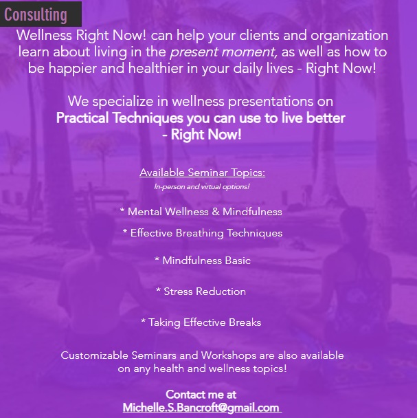 At Wellness Right Now!, our wellness presentations stand out because of our focus on actionable strategies and tools that your employees can implement immediately to improve their lives. Another key aspect of our approach is our emphasis on customized wellness solutions. We understand that every organization is unique, which is why we tailor our workshops and services to meet the specific needs and challenges of your team. Whether it's stress management, improving physical health, or fostering better workplace relationships, we work closely with you to develop a program that delivers measurable results and lasting benefits.